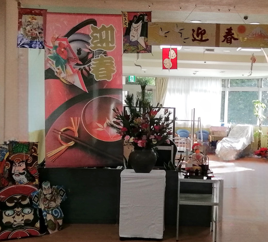 祝賀会では理事長より新年の抱負と、皆様の健康を願う温かい挨拶がありました。続いて、入居者代表の方からも新年のご挨拶をいただきました。祝賀会が終了すると昼食の時間となり、おせち料理を召し上がっていただきました。
