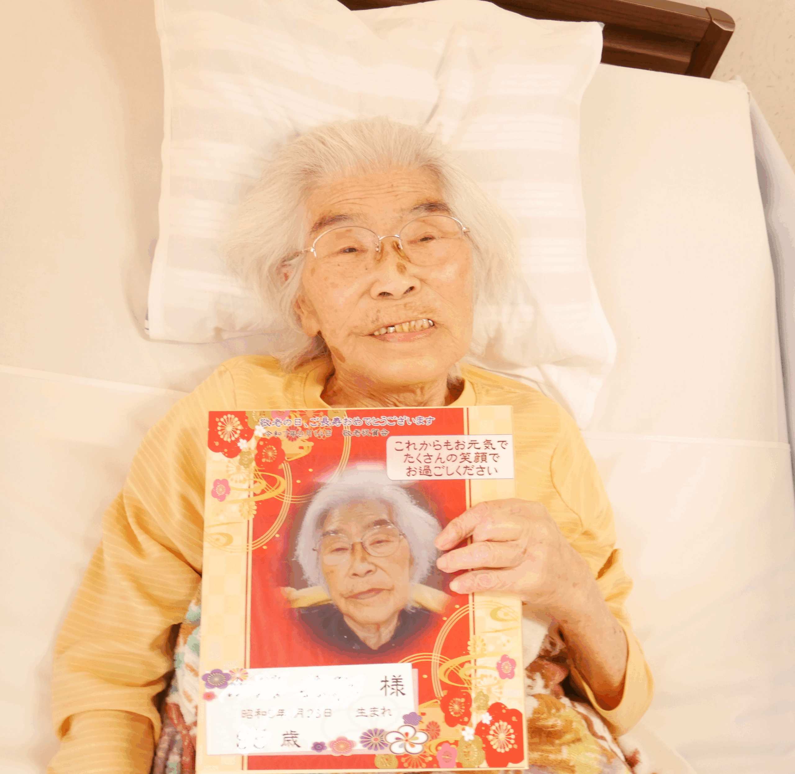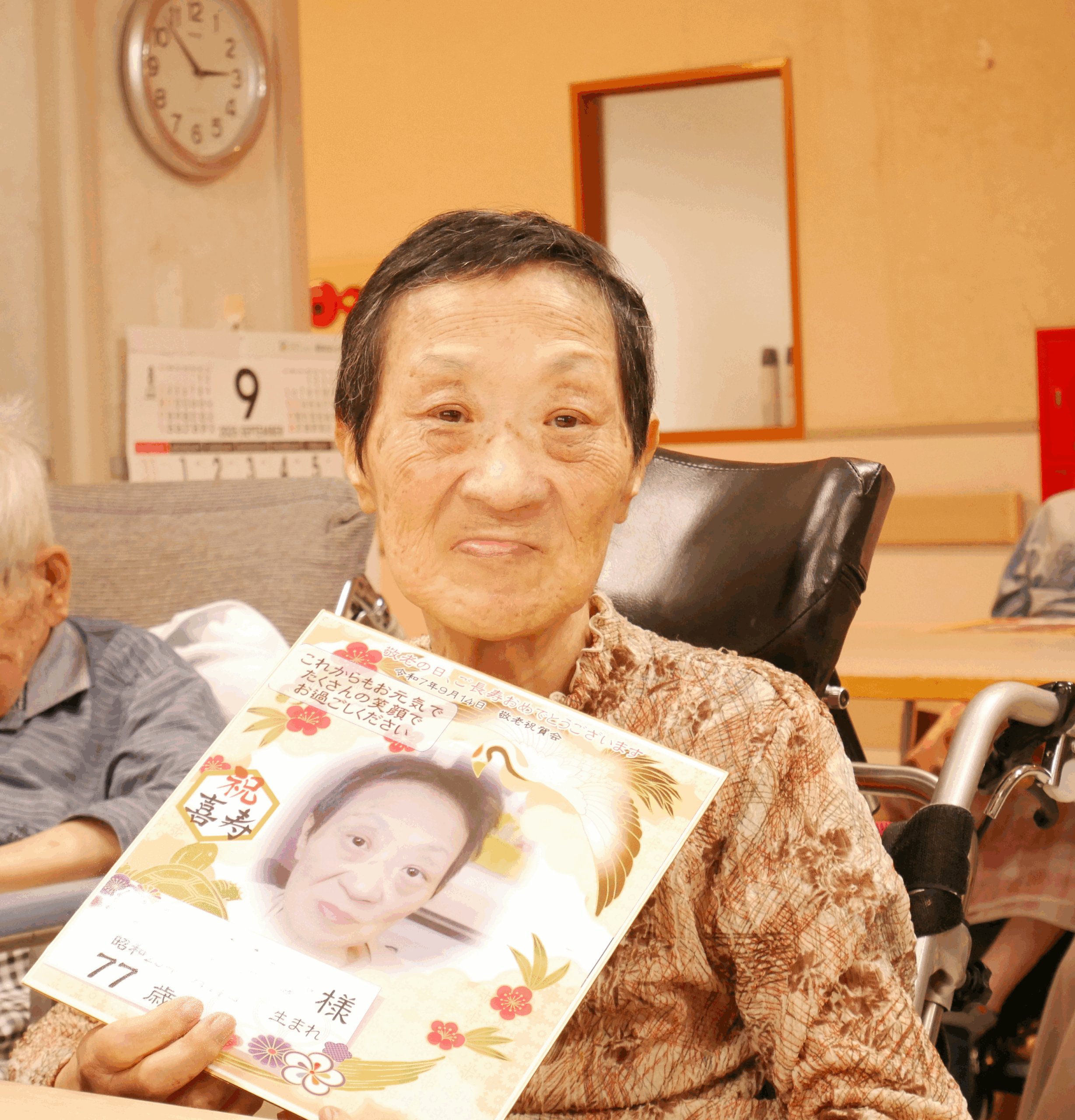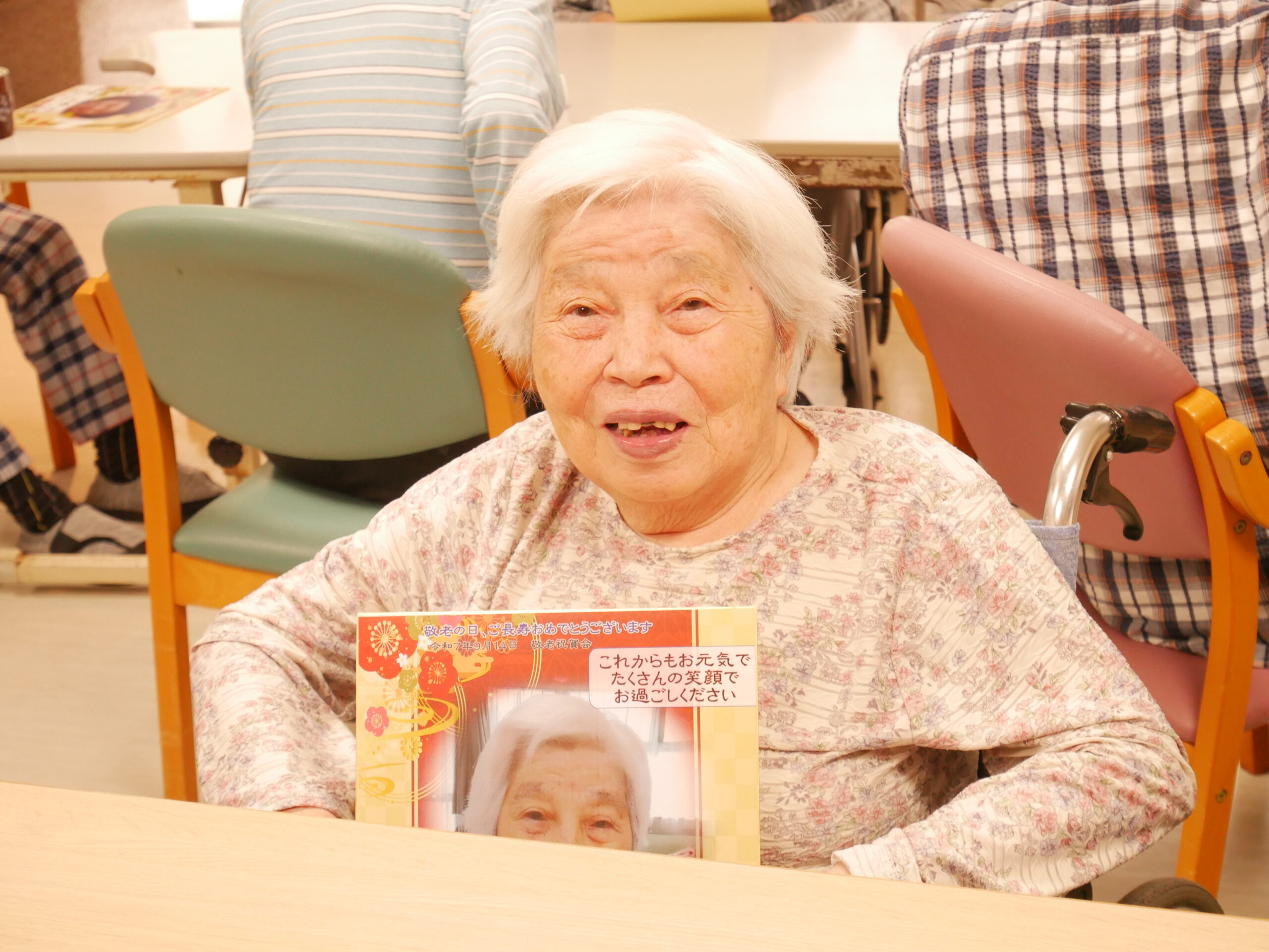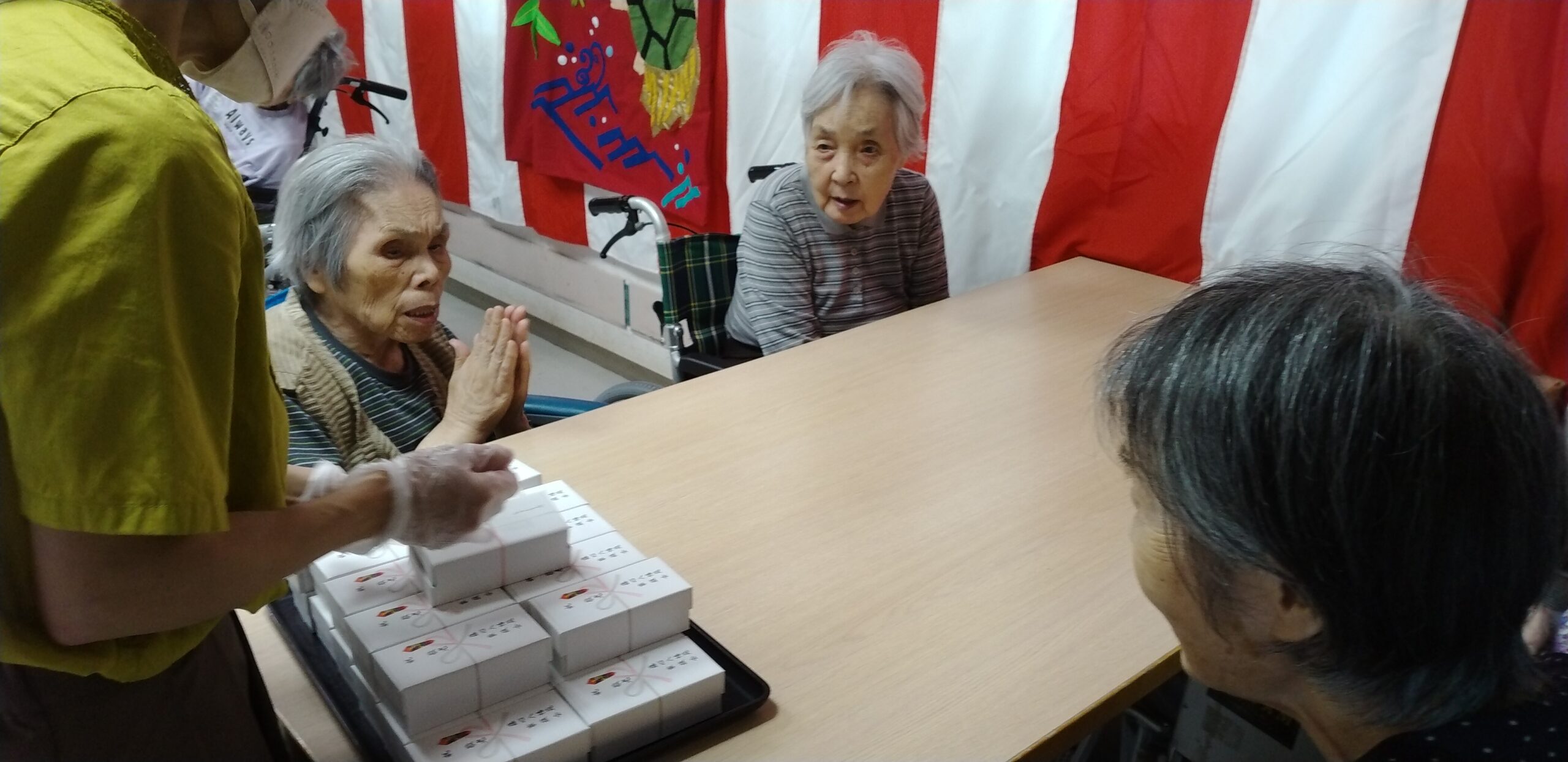 祝賀会のあと色紙と紅白饅頭をお渡しすると喜んでいただけました♪