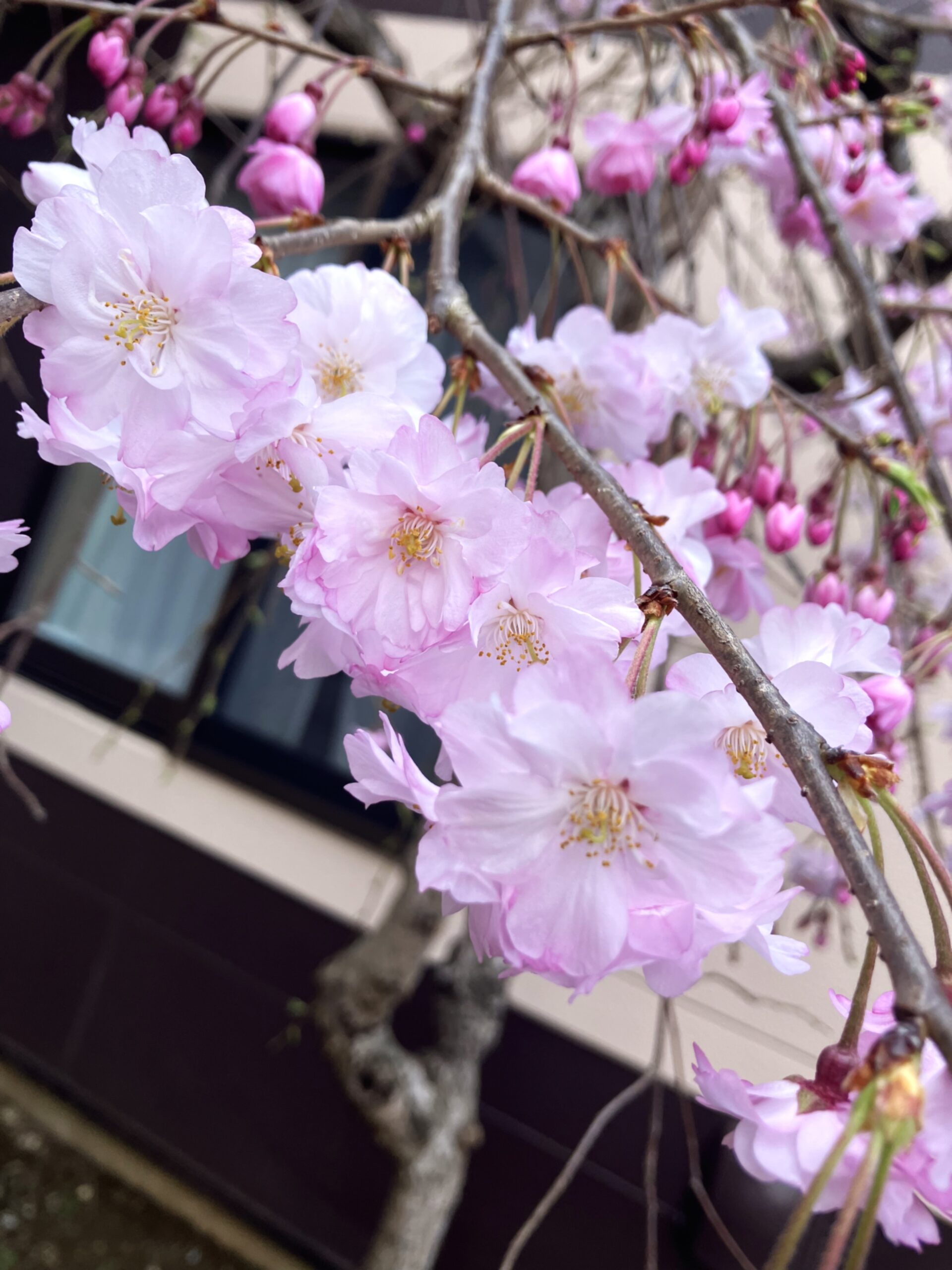 お天気の良い日は、入口の桜を見物しながら、お散歩しています。