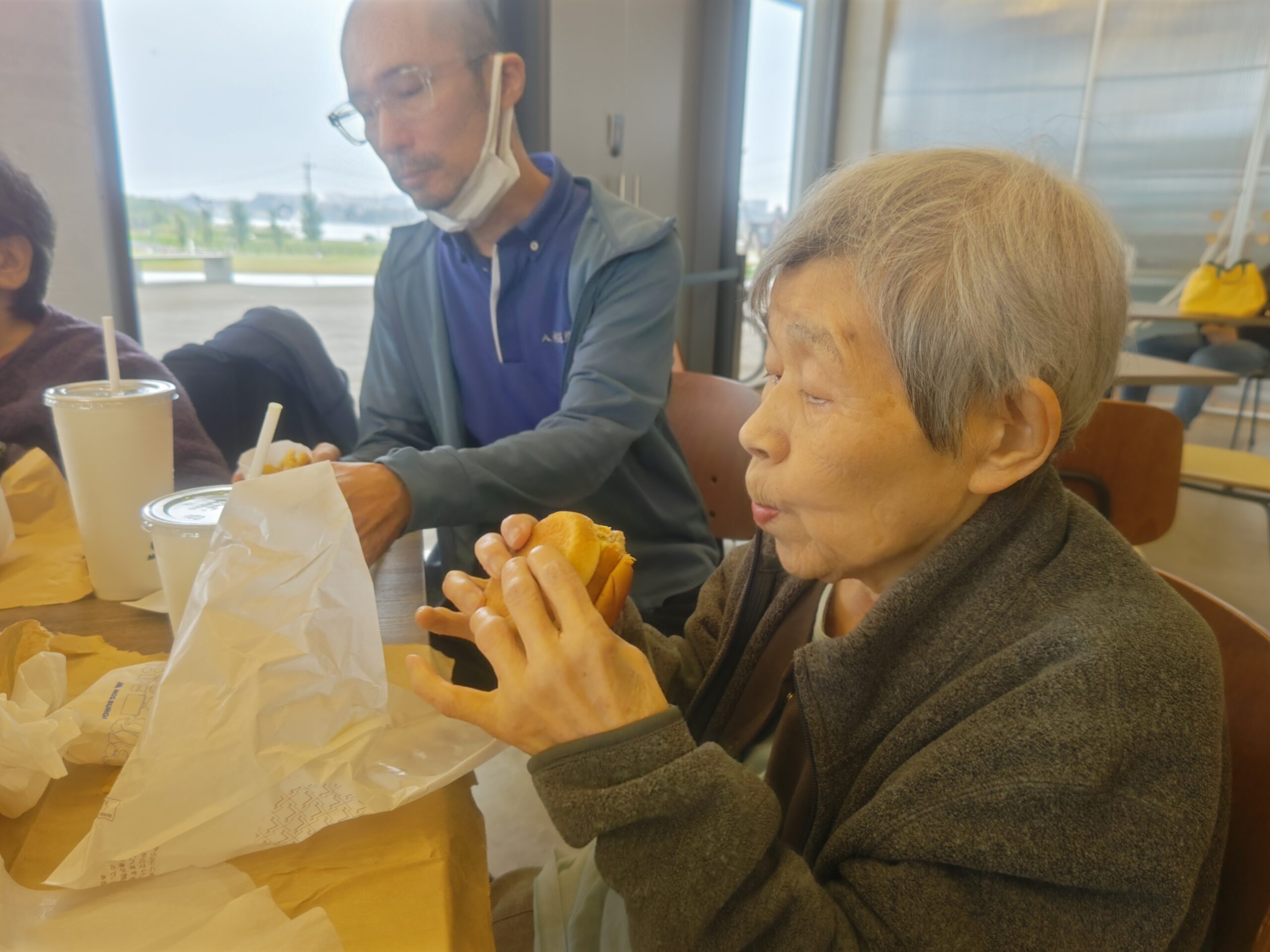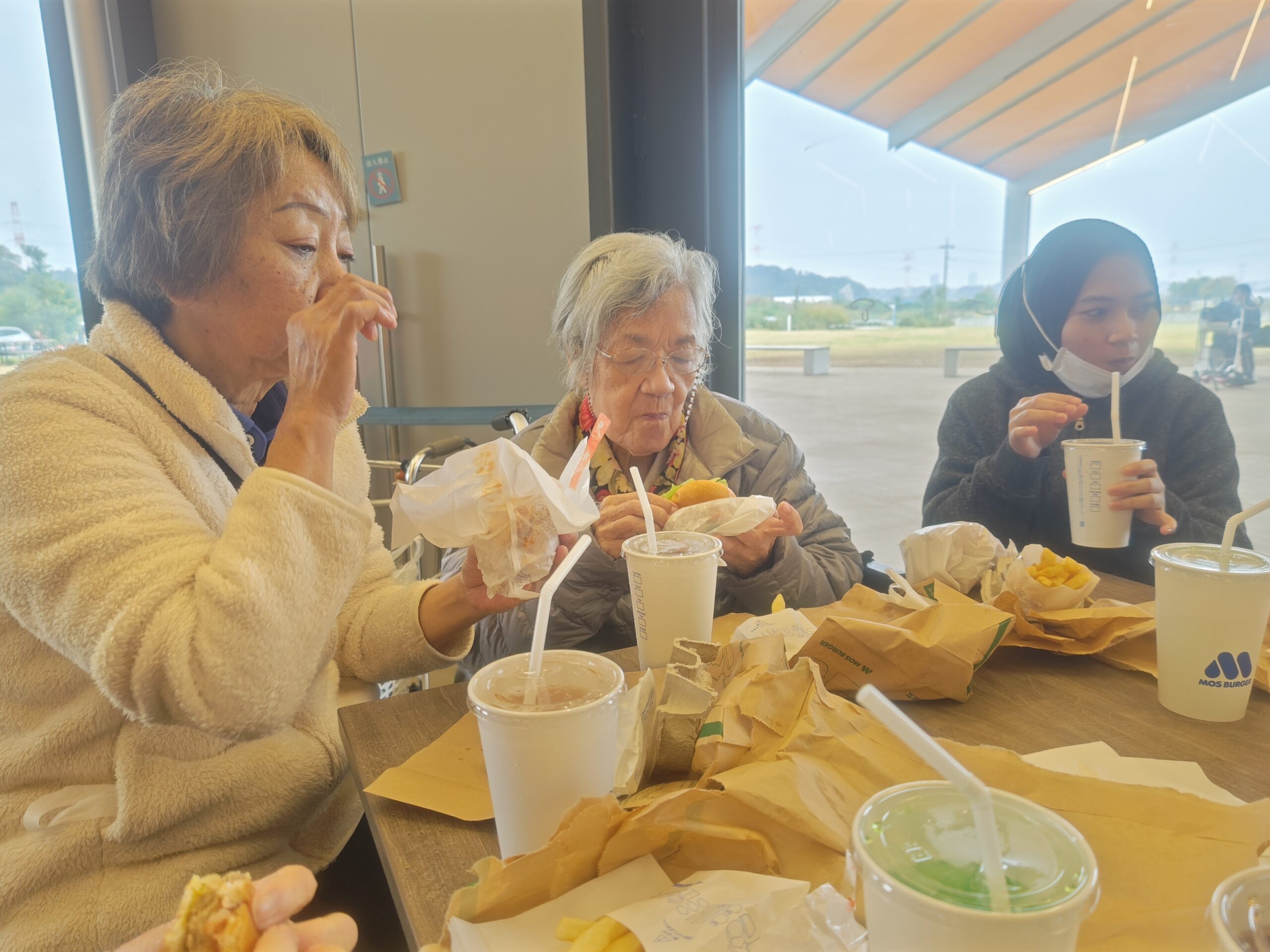 あいにくの雨でしたがモスバーガーをテイクアウトし、