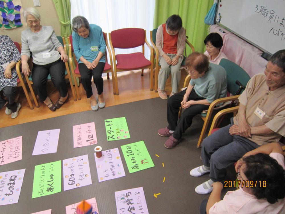 プログラム内容は「ご長寿すごろく」「スタッフによるハンドベル演奏」