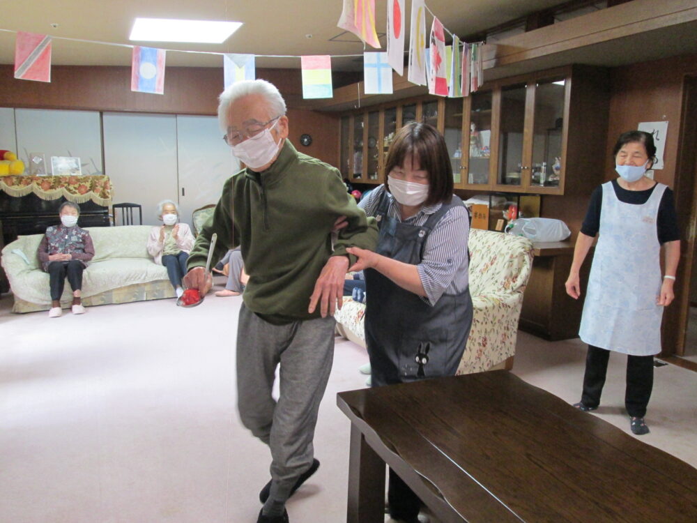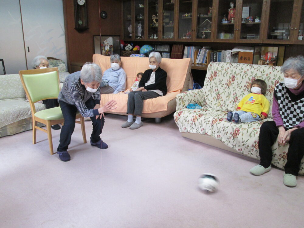 今日は、リビングでミニ運動会を開催しました。種目は、玉入れとボーリングにお玉リレーの3種目です。笑いと歓声で予想以上に盛り上がりました。運動不足解消になったようです。運動した後は、手作りいなり寿司の弁当をいただきました。