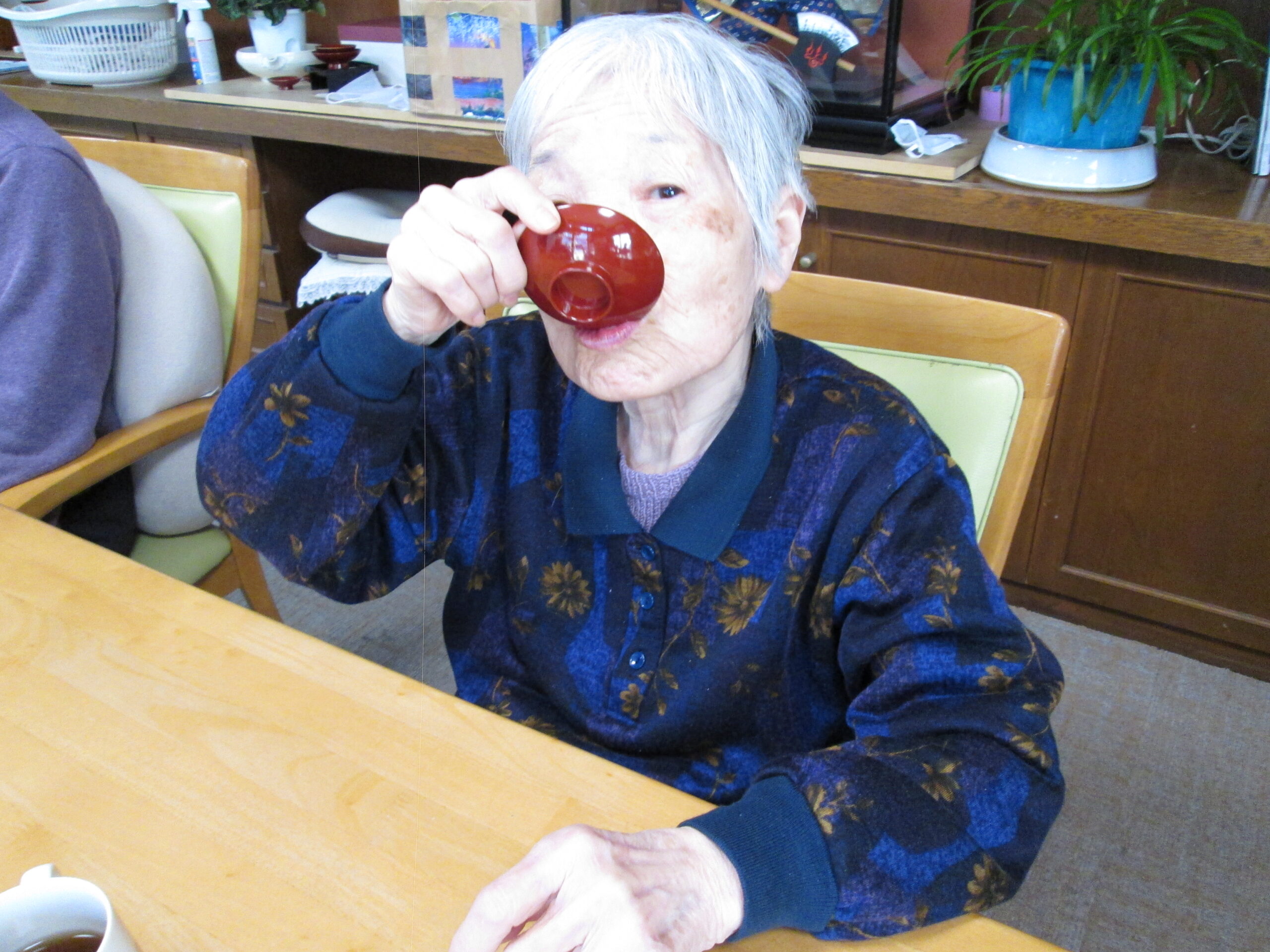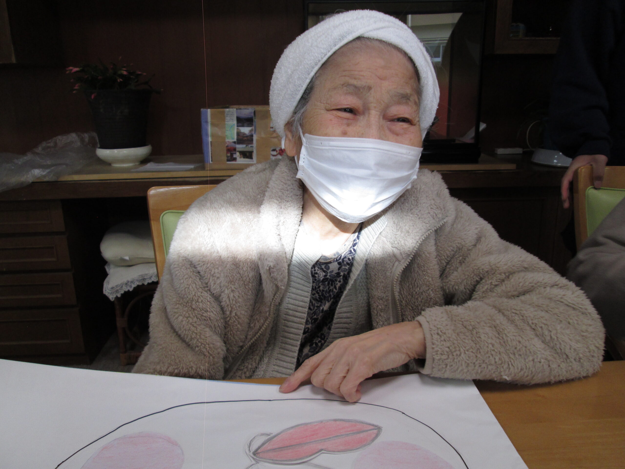 新年、明けましておめでとうございます。今年もよろしくお願いします。入居者様皆さんで、甘酒でお祝いしました。レクリエーションでは、福笑いを行い、楽しみました。
