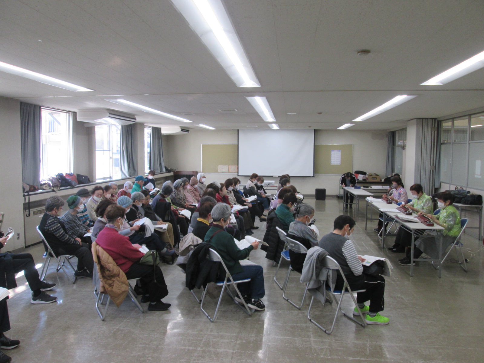1月の朗らか・ニコニコ教室は「大正琴でお正月気分♪/冬の体調管理」を開催しました。歌詞集を用意していただき、参加者の皆様で合唱しました。皆様とても大きな声で歌っていて驚きました。今年も一年、元気に過ごしていけるといいですね。